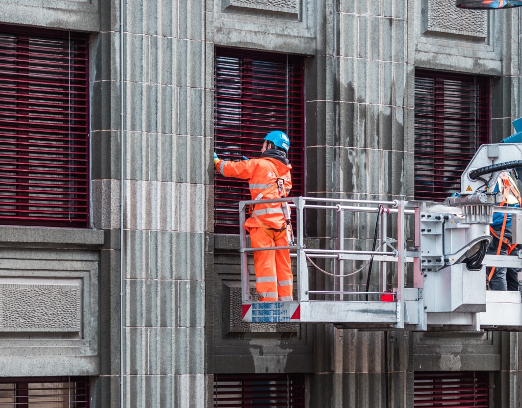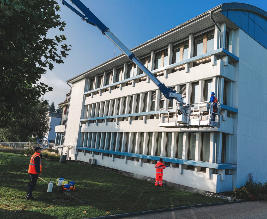 Unsere Mitarbeitenden sind dank regelmässiger Schulung fit im Umgang mit Hilfsmitteln wie Leitern, Gerüsten sowie Hebebühnen, welche sie für die effiziente Storenreinigung einsetzen. Unsere Angestellten aus dem Bereich «Spezialreinigung» sind zudem im Besitz eines Ausweises der SVBL ASFL (Ausbildung: Hubarbeitsbühne nach VSAA).