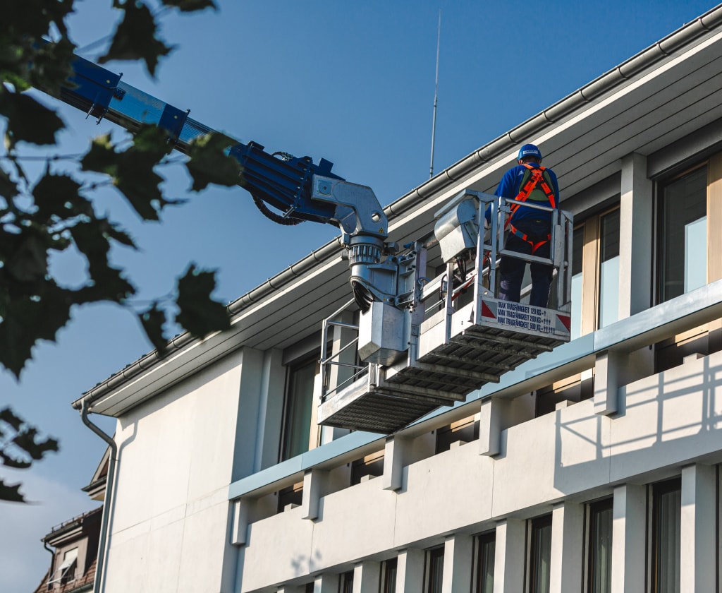 Benötigen Sie eine Hebebühne, zum Beispiel zur Sanierung Ihrer Fassade oder zur Inspektion Ihrer Immobilie?